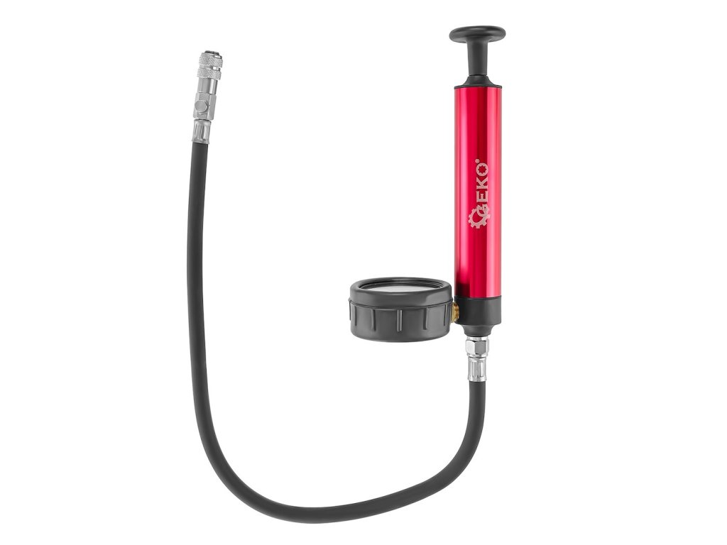 Tester slouží k lokalizaci netěsností v chladicím systému. Odolná ruční pumpa s plynulým chodem a snadno čitelnou stupnicí manometru. Součástí sady je také 12 adaptérů pro různé značky automobilů a teploměr.