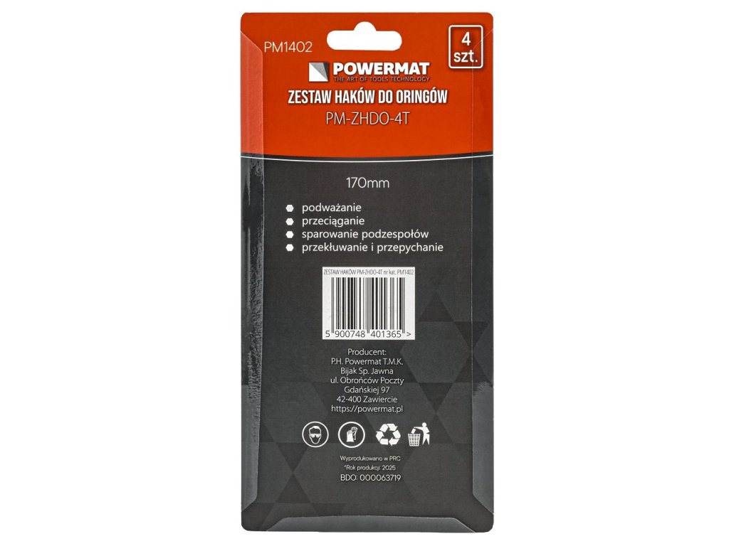 Sada háčků a hrotů POWERMAT PM-ZHDO-4T je praktické servisní nářadí pro přesnou práci s O-kroužky, těsněními, sponami a drobnými komponenty v těžko přístupných místech. Obsahuje čtyři precizně tvarované nástroje s ergonomickou rukojetí pro pohodlné použití.