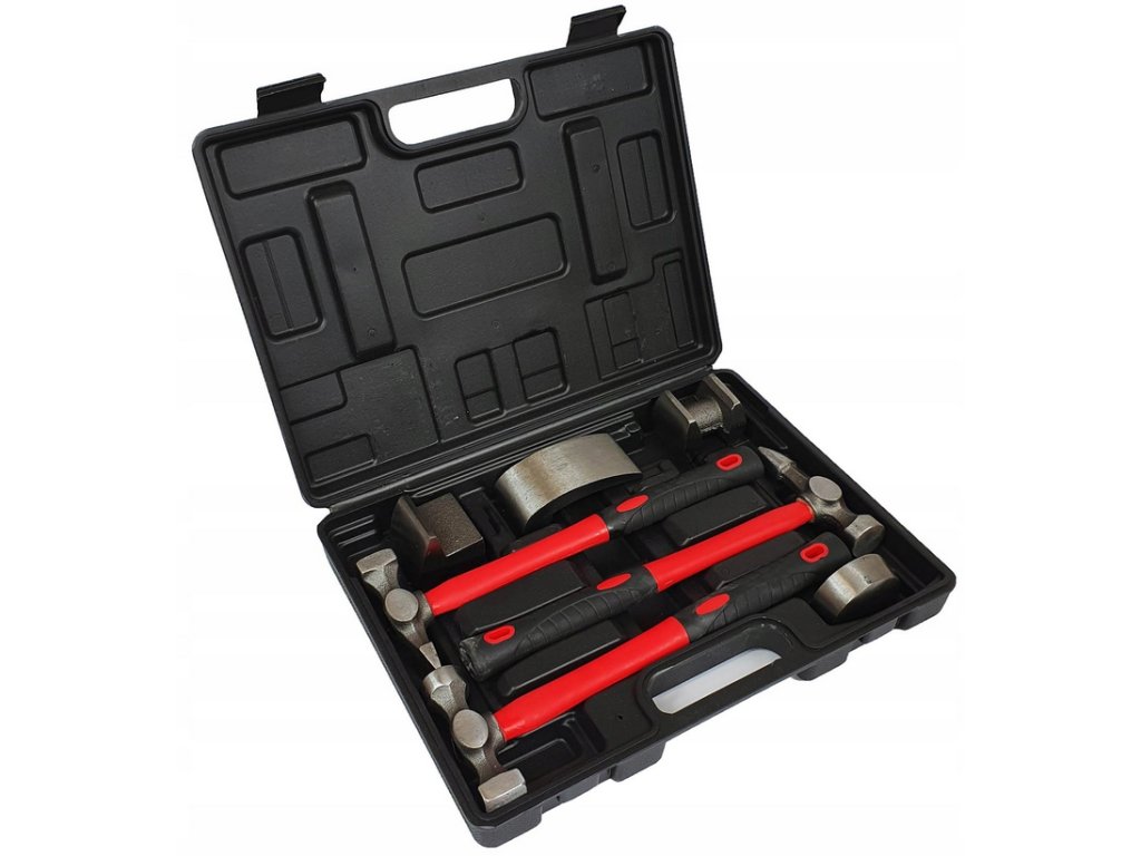 - Klempířský set obsahuje 4 kovadliny, 3 kladiva s profilovanou sklolaminátovou rukojetí (dodatečně potaženou pogumováním)