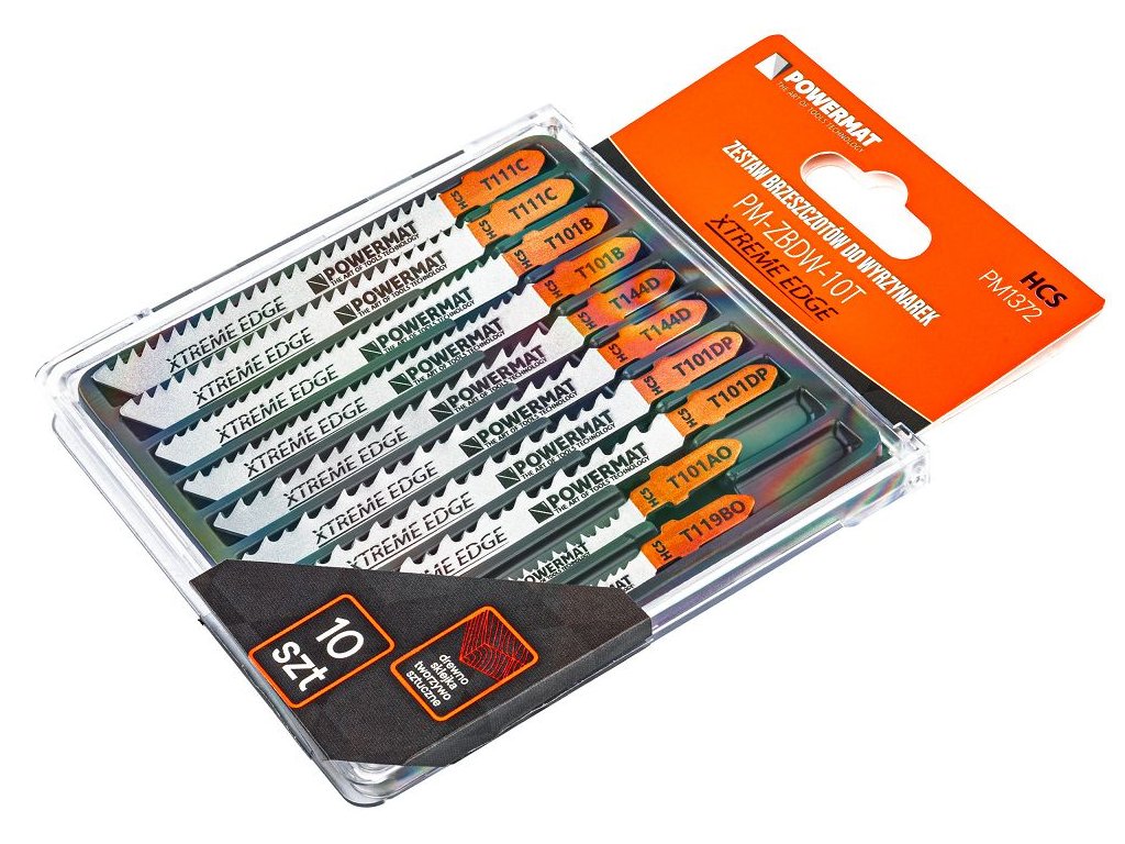 Sada pilových listů do přímočaré pily POWERMAT PM-ZBDW-10T – 10 ks HCS ostrý pro dřevo a lamináty