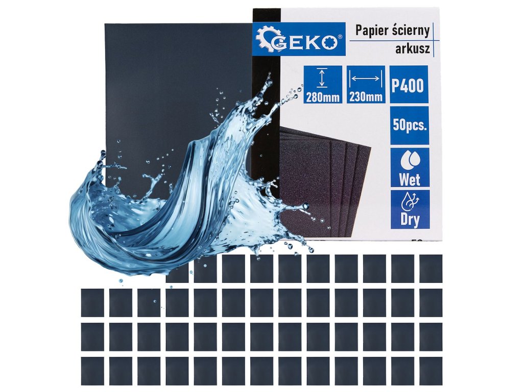 List vodního brusného papíru o rozměrech 230 x 280 mm a zrnitosti P400 , který byl vyvinut pro dosažení vynikajících výsledků při suchém i mokrém zpracování různých povrchů.