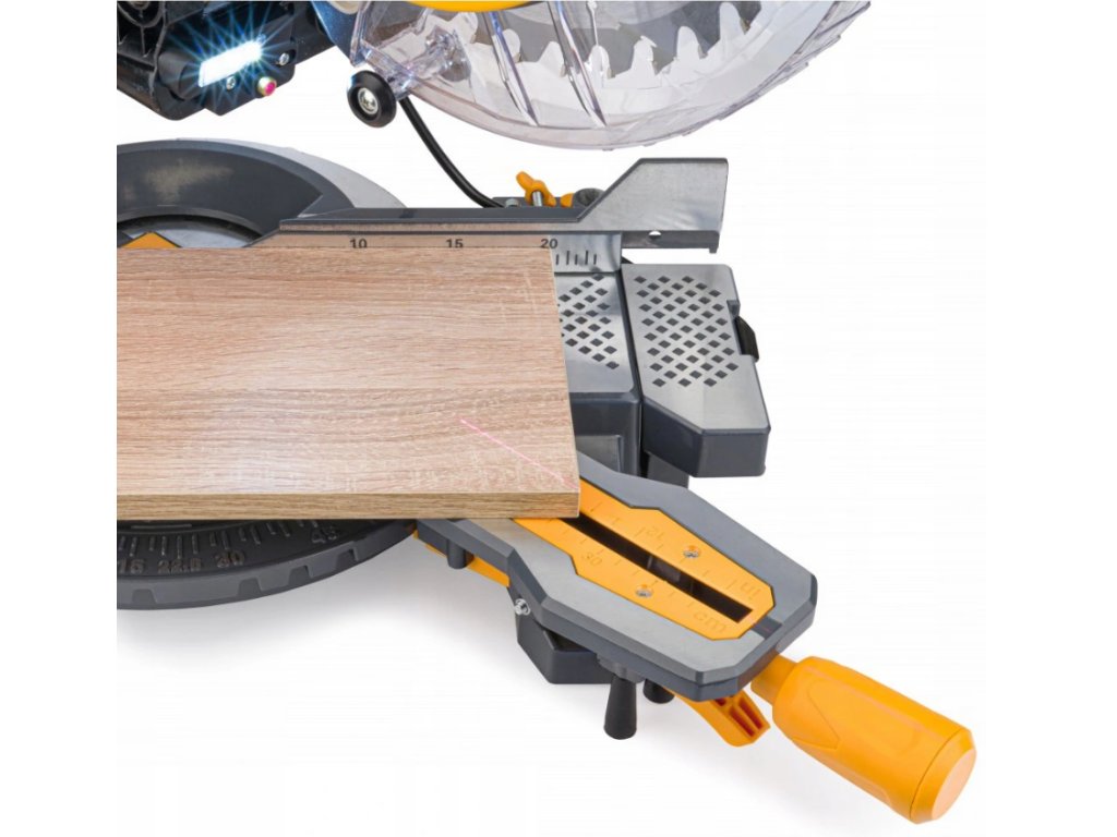 Je navržena pro přesné řezání tvrdých i měkkých druhů dřeva, dřevěných profilů i plastů. Velkou výhodou je velmi silný motor 2200 W ve spojení s potahem a řezným kotoučem o průměru 305 mm, díky kterému stroj zvládne řezy o výšce 60 mm a délce až výborných 330 mm. Kotouč je vyroben z kvalitního materiálu a má standardně 24 zubů z tvrdokovu, což zajišťuje velice přesný a hladký řez. Pro přesnou práci je pila osazena laserem a plný kryt pilového kotouče zajišťuje maximální bezpečnost obsluhy.