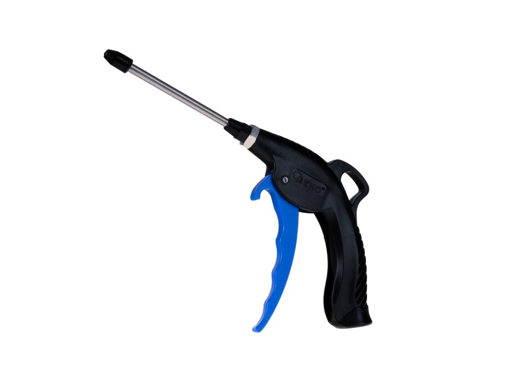 - Ocelová tryska 10 cm : Pistole je vybavena odolnou ocelovou tryskou o délce 10 cm, která zaručuje přesné a účinné foukání, ideální pro odstranění prachu, nečistot a usazenin z těžko přístupných míst.