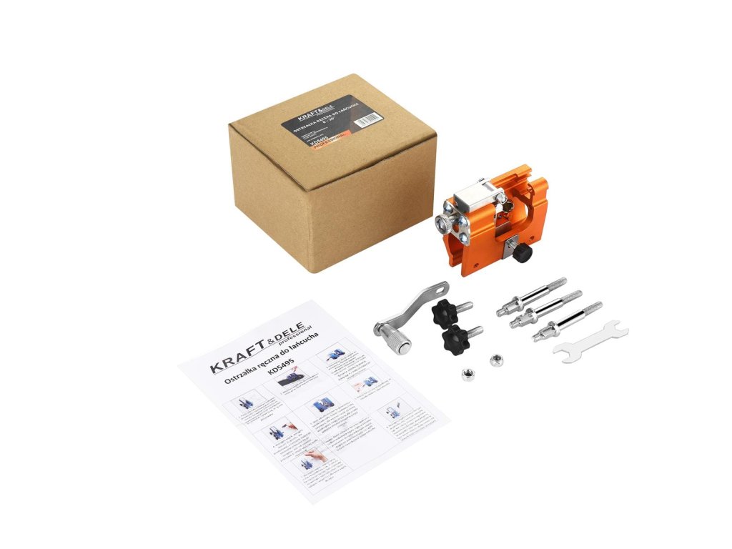 - Univerzálnost: Kompatibilní s různými velikostmi řetězů díky pěti vyměnitelným brusným kamenům.