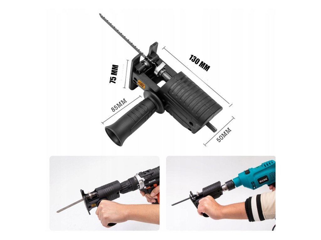 Nástavec promění vaši vrtačku nebo šroubovák v univerzální pilu. V kombinaci s vhodným pilovým listem nahradí ruční či elektrické pily a snadno si poradí se dřevem, kovem i plasty. Ideální pomocník pro dílnu, stavbu i domácnost.