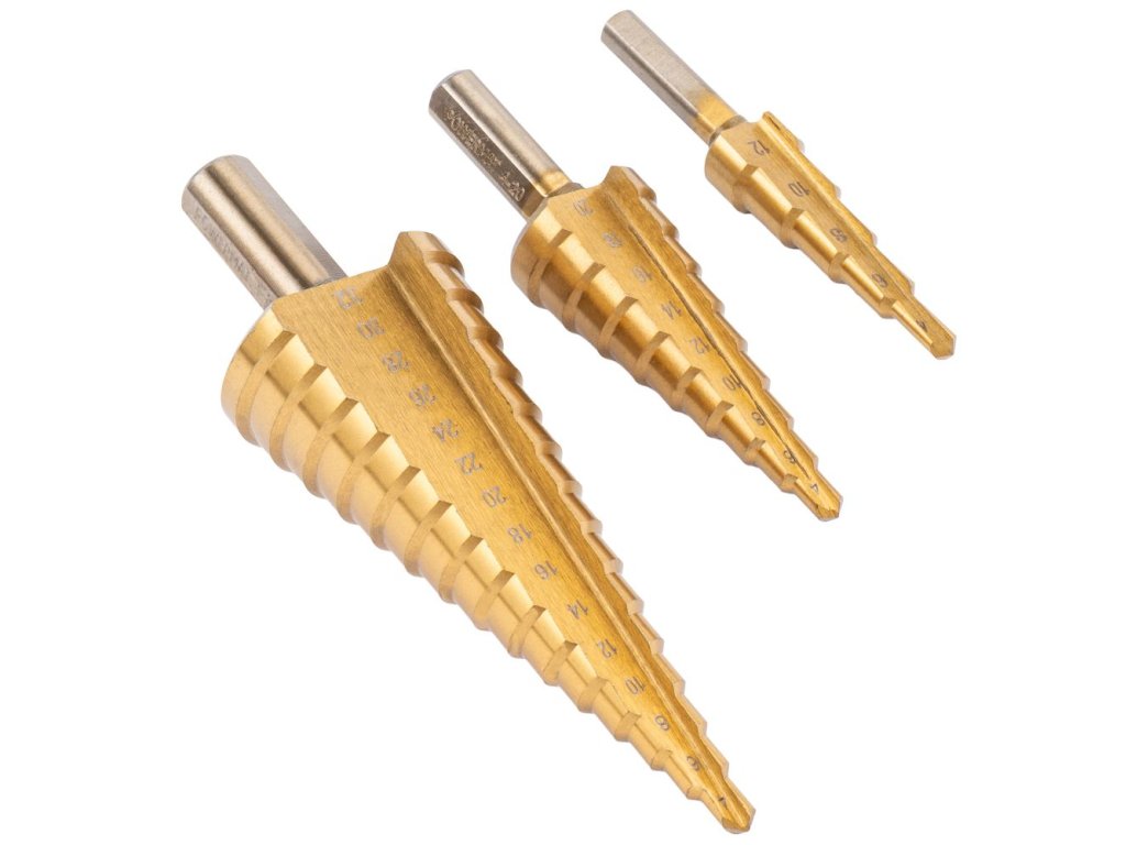 Tato sada stupňovitých kuželových vrtáků je skvělá volba pro každého, kdo chce vrtat přesné otvory do různých materiálů bez neustálé výměny vrtáků. Stupňovitý tvar umožňuje plynule zvětšovat průměr otvoru a pracovat rychleji i čistěji, zejména při vrtání do plechu.