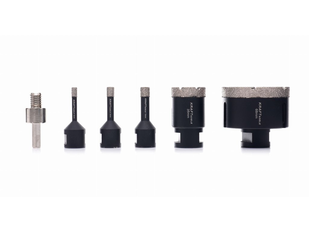 Sada diamantových děrovek od Kraft&Dele je skvělým pomocníkem pro pohodlné vrtání do tvrdých materiálů. Bezpečné a precizní vrtání zajišťuje jemný diamantový prášek. V balení najdete děrovky o průměrech: