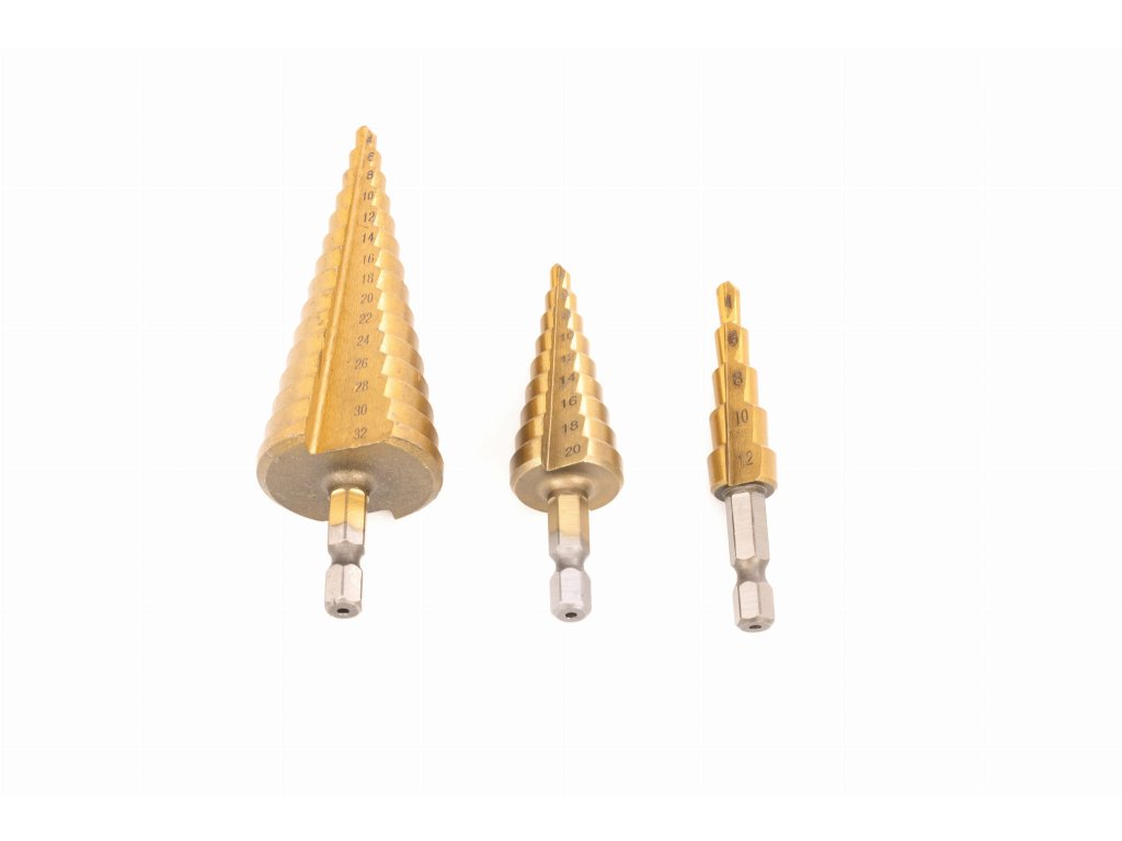 Hledáte nástroj, který zvládne vše od vrtání do kovu až po práci s plasty a dřevem? Naše kuželové vrtáky s titaniovou úpravou jsou tu pro vás! Sada obsahuje: