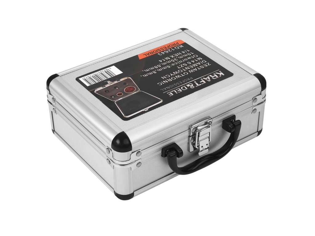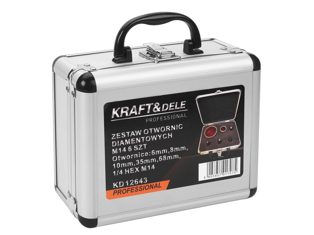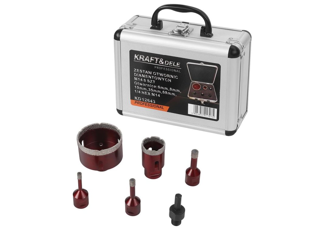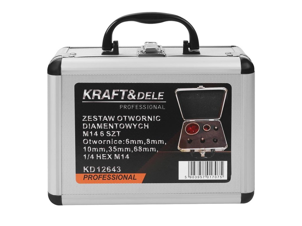 Sada diamantových vrtáků KRAFT&DELE KD12643 je váš parťák pro přesné vrtání do tvrdých materiálů! Obsahuje 6 korunek (6–68 mm) a univerzální adaptér, takže vám sedne na jakoukoliv vrtačku. Vše je pěkně uložené v praktickém kufru, žádný chaos v dílně. Vrtáky jsou z kvalitních materiálů, takže vydrží a neunaví. Perfektní pro kutily i profíky, kteří chtějí mít vše hezky pohromadě a hned připravené k akci.