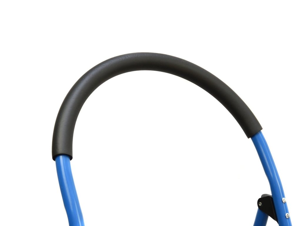 V horní části žebříku se nachází černá zaoblená rukojeť, která usnadňuje výstup a sestup a zabraňuje ztrátě rovnováhy. Žebřík má také černé gumové krytky na nohách, které zabraňují jeho posouvání a nepoškozují podlahu.