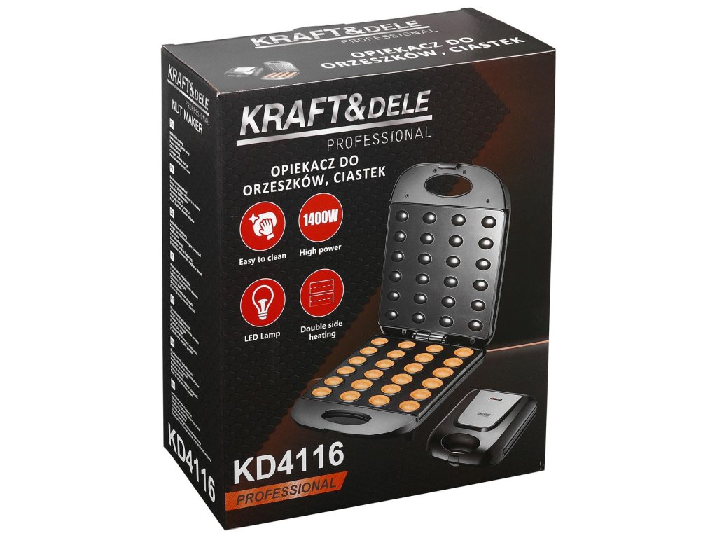 Vytvořte si nezapomenutelné chvíle s naší elektrickou oříškovačkou KD4116! Díky kapacitě 24 polovin oříšků máte příležitost udělat radost celé rodině. Užijte si snadné čištění díky nepřilnavému povrchu a bezpečnost zajištěnou skrz protiskluzové nožky. Indikátor vás vždy informuje, kdy začít pečení. Perfektní přístroj pro každou kuchyni!