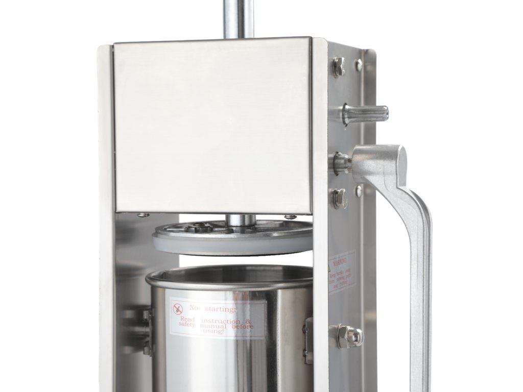 Zásobník s objemem 5 kg je ideální pro větší domácí výrobu i menší profesionální použití. Jedna dávka postačí na plnění větší série klobás bez častého doplňování směsi.