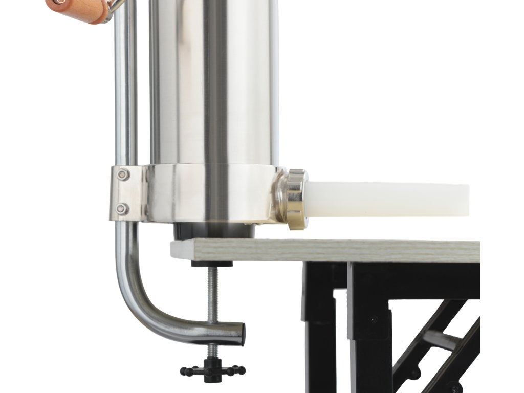 Robustní ruční plnička klobás Kraft&Dele KD4131 s kapacitou 4 kg je ideální pro domácí výrobu klobás, jitrnic a dalších uzenin. Tělo z nerezové oceli v kombinaci se silikonovým pístem zajišťuje dlouhou životnost, snadné čištění a hygienický provoz. Díky pevnému uchycení ke stolu a čtyřem vyměnitelným nástavcům zvládne jak tenké párky, tak silnější klobásy.