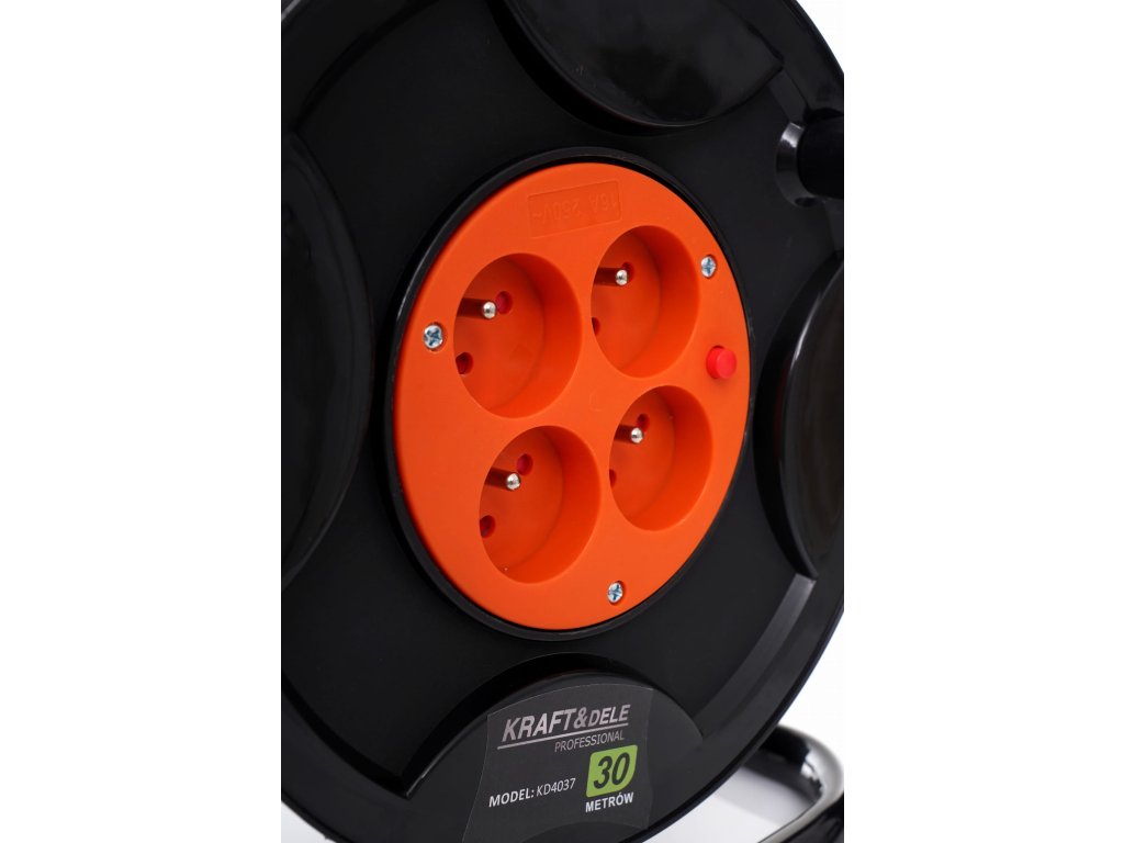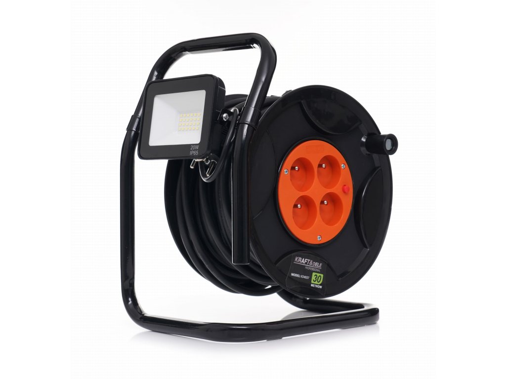ROZŠÍŘENÍ BUBEN 30M + LED KD4037 je ideální společník pro každého kutila i zahradníka. Dlouhý 30m kabel vám poskytne svobodu pohybu, zatímco 4 zásuvky se postarají o vaše zařízení. Díky integrovanému LED osvětlení s krytím IP65 vidíte jasně i za šera. Lehká konstrukce a ergonomická rukojeť zase zajistí snadnou manipulaci.