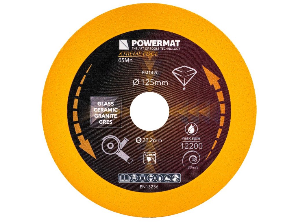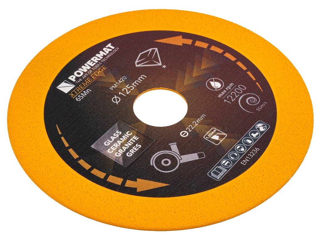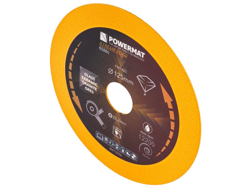 Diamantový kotouč POWERMAT PM-TDCS-1251T s průměrem 125 mm je určen pro precizní a čisté řezání skla, keramiky, dlaždic, kamene a dalších tvrdých materiálů. Díky tenkému profilu řezu a oboustrannému diamantovému povlaku poskytuje hladké hrany bez odštěpků a dlouhou životnost i při náročné práci.