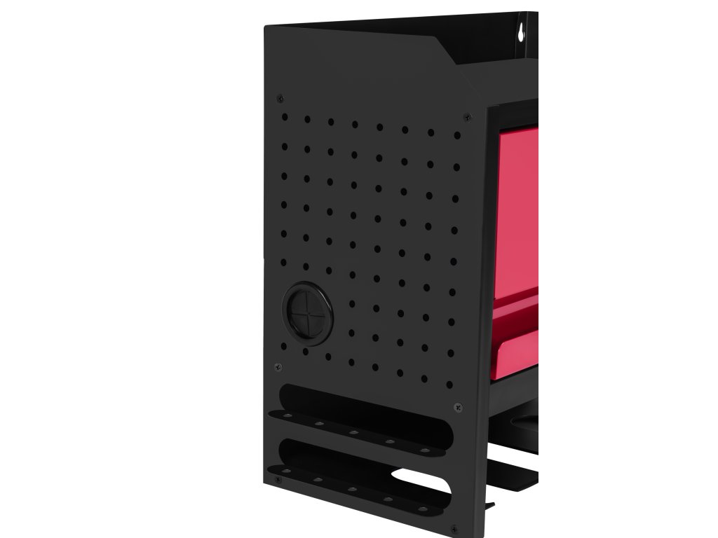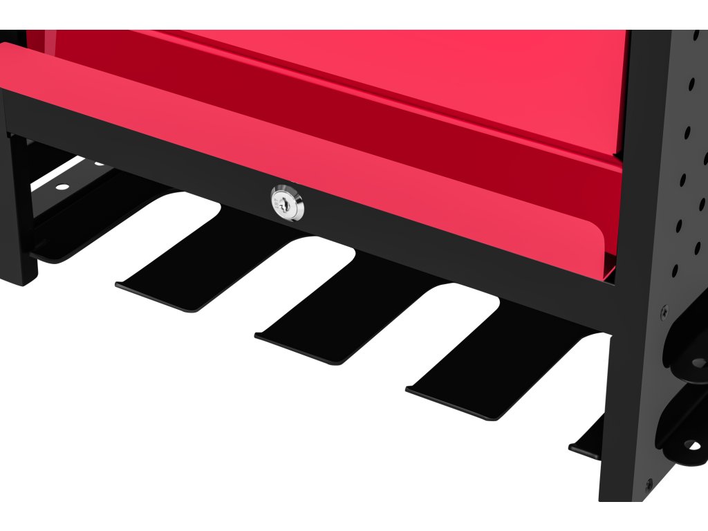 - uzamykatelný Robustní ocelový organizér s práškovým lakem pro přehledné uložení vrtaček, aku šroubováků a příslušenství