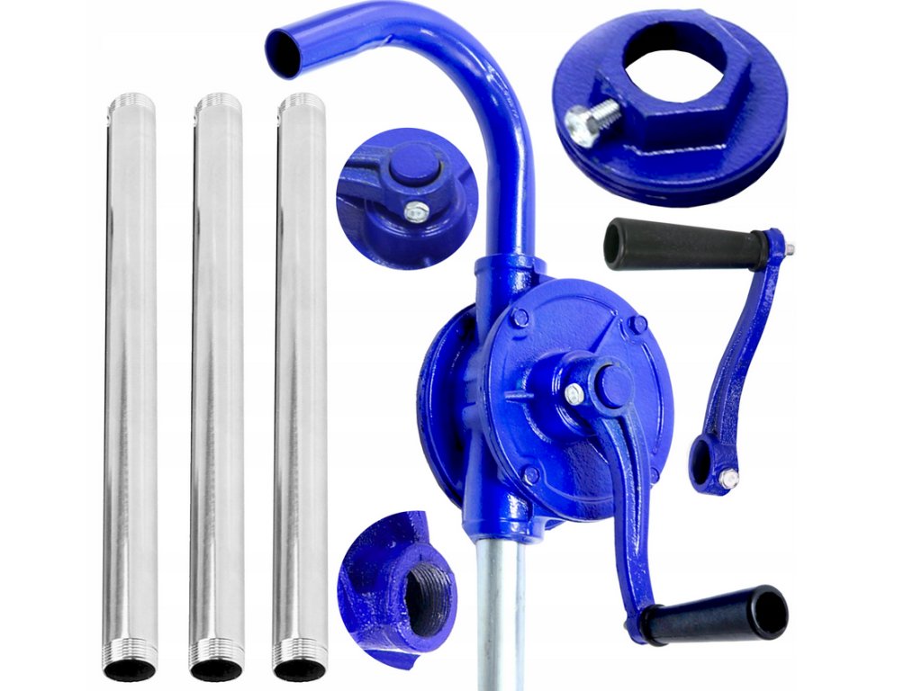 Ruční sudová pumpa na palivo a olej s klikou pro rychlé čerpání z kanystrů a sudů. Vhodná pro naftu, benzín* i mazací oleje – jednoduchá obsluha, odolné provedení.