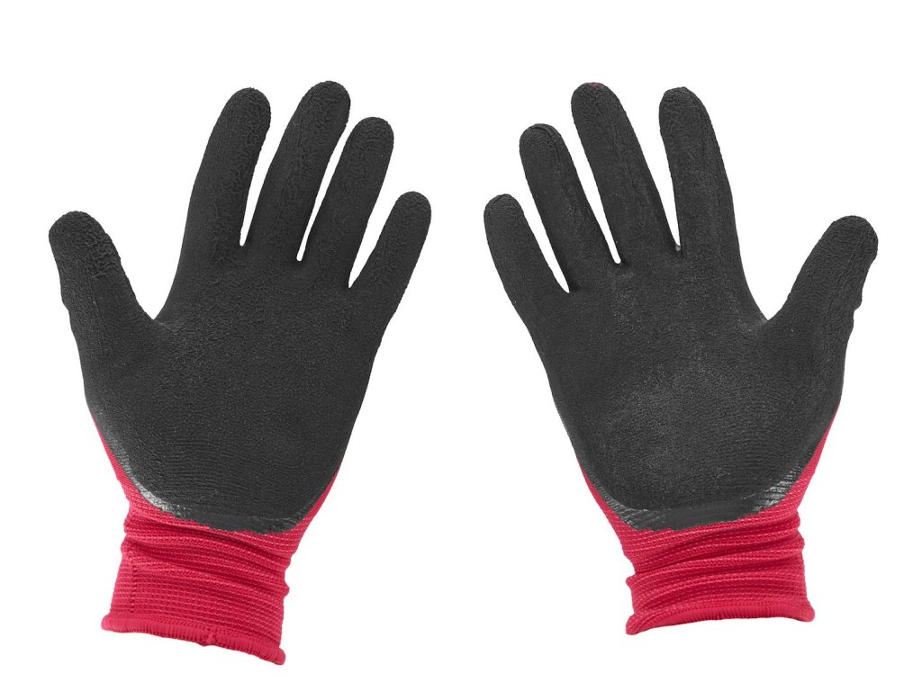 Pracovní rukavice vyrobené z polyesteru potažené latexem. Pružné a roztažitelné, ideálně se přizpůsobí ruce. Odolné proti oděru a roztržení. K dispozici v různých barvách.