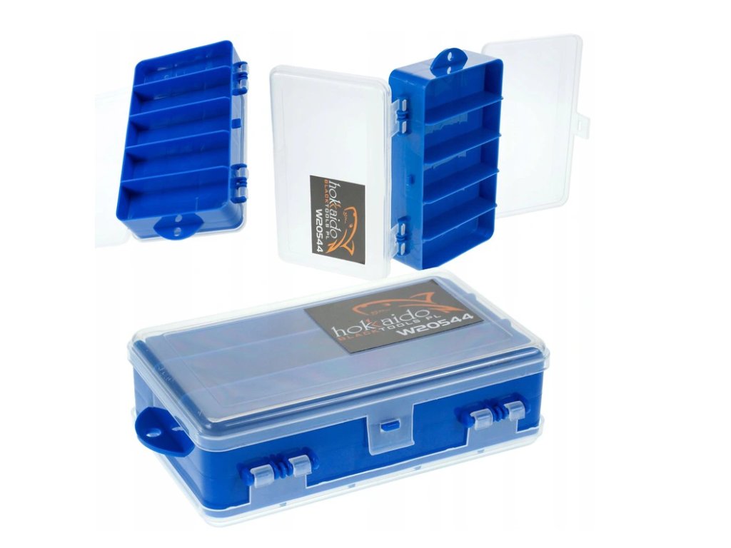 - Oboustranná krabička Hokkaido (modrá) – praktické řešení pro snadnou organizaci malého i většího rybářského příslušenství díky dvěma samostatným přihrádkám uzavíraným z obou stran