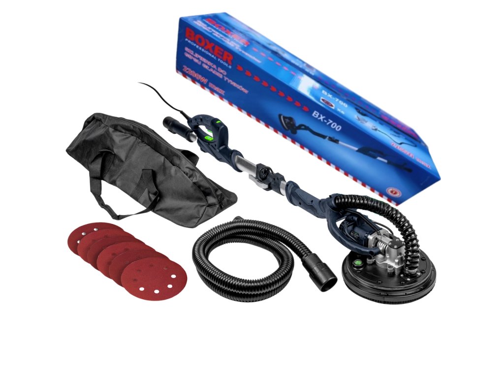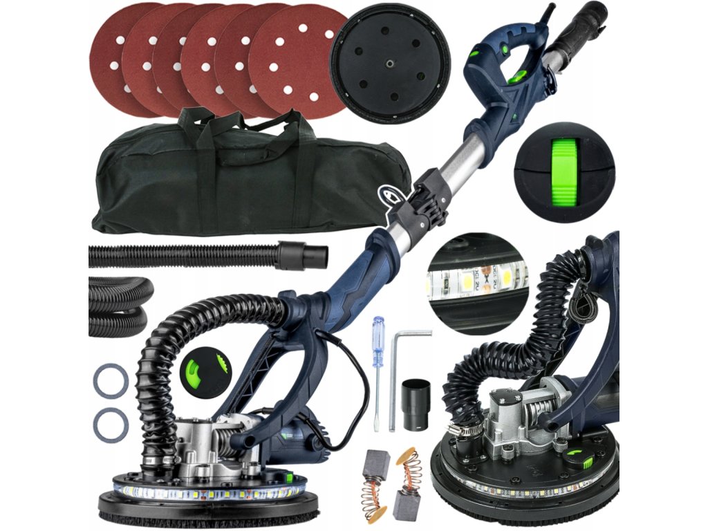 Profesionální bruska určená pro broušení stěn a stropů ze sádrokartonu, štuků či omítek. Díky teleskopickému nástavci snadno dosáhnete i na vyšší plochy bez nutnosti použití žebříku. Výkonný motor s regulací otáček a LED osvětlení 360° vám zajistí perfektní viditelnost a komfort při práci.