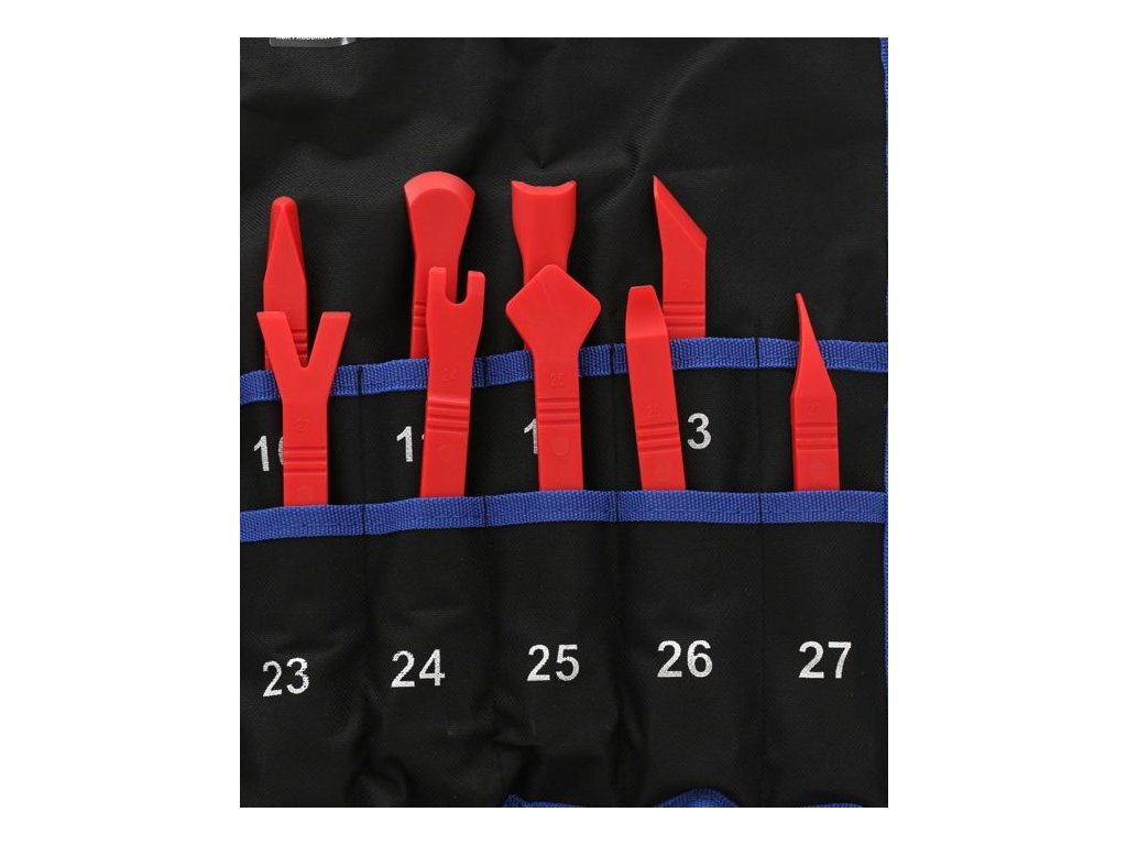 Pokud hledáte ideální nástroje pro demontáž tapiserie, je tato sada 27 špičkových nástrojů právě pro vás. Je perfektní pro profesionály i kutily. Díky odolné konstrukci z nylonu a snadné manipulaci je práce bezpečná a účinná. Sada obsahuje různé nástroje pro jakékoli úkoly, minimalizuje riziko poškození interiéru vozu. Opatřeno certifikací CE, což zaručuje kvalitu a spolehlivost.