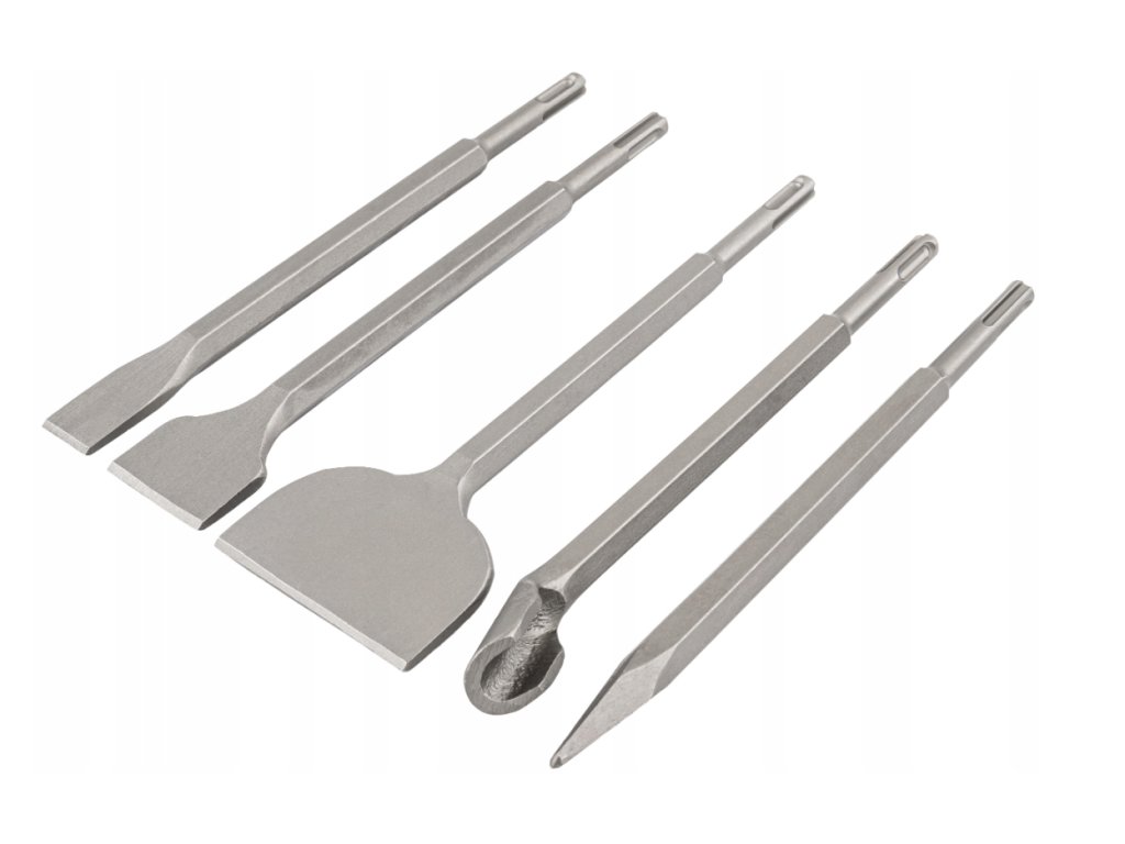 Tato sada obsahuje **5 kusů SDS+ dlát dlouhých 250 mm**, která jsou určena pro bourací a tvarovací práce s materiály jako je beton, kámen, cihly nebo omítka. Díky různým tvarům dlát zvládneš širokou škálu úkonů – od odstraňování materiálu po přesné drážkování a štípání.