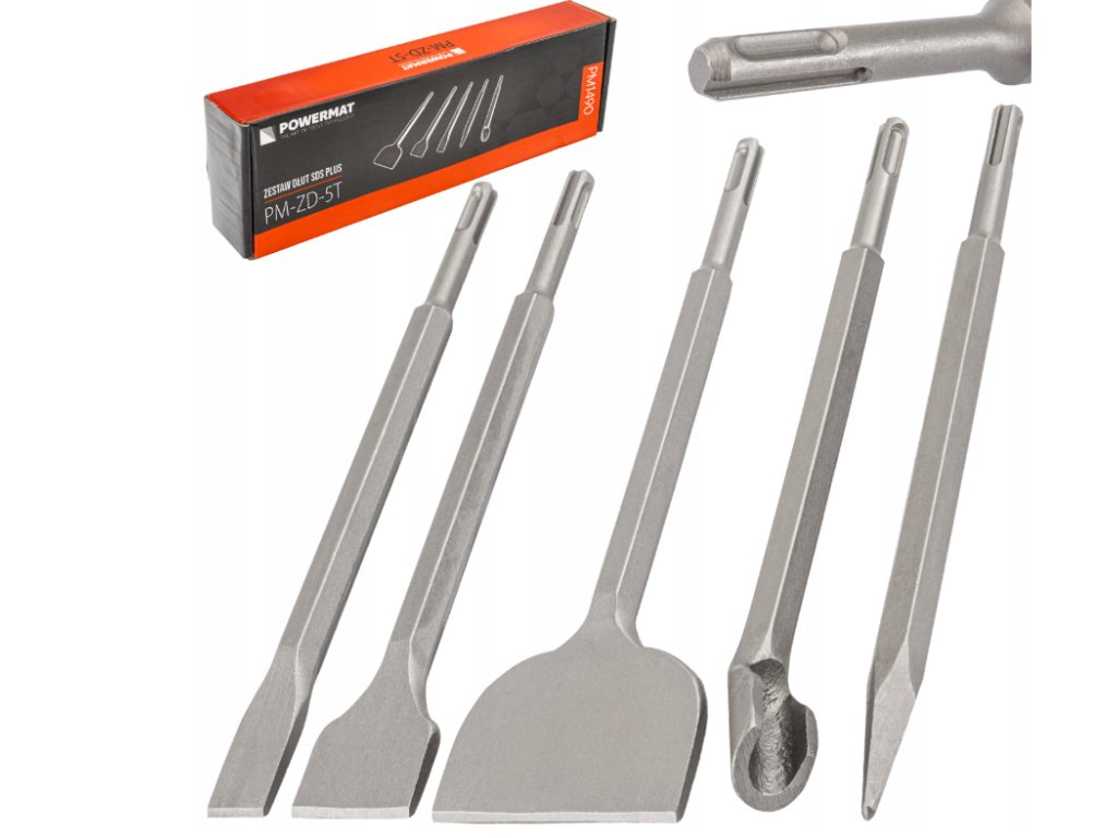 - Sada obsahuje **5 kusů SDS+ dlát dlouhých 250 mm** různých tvarů.