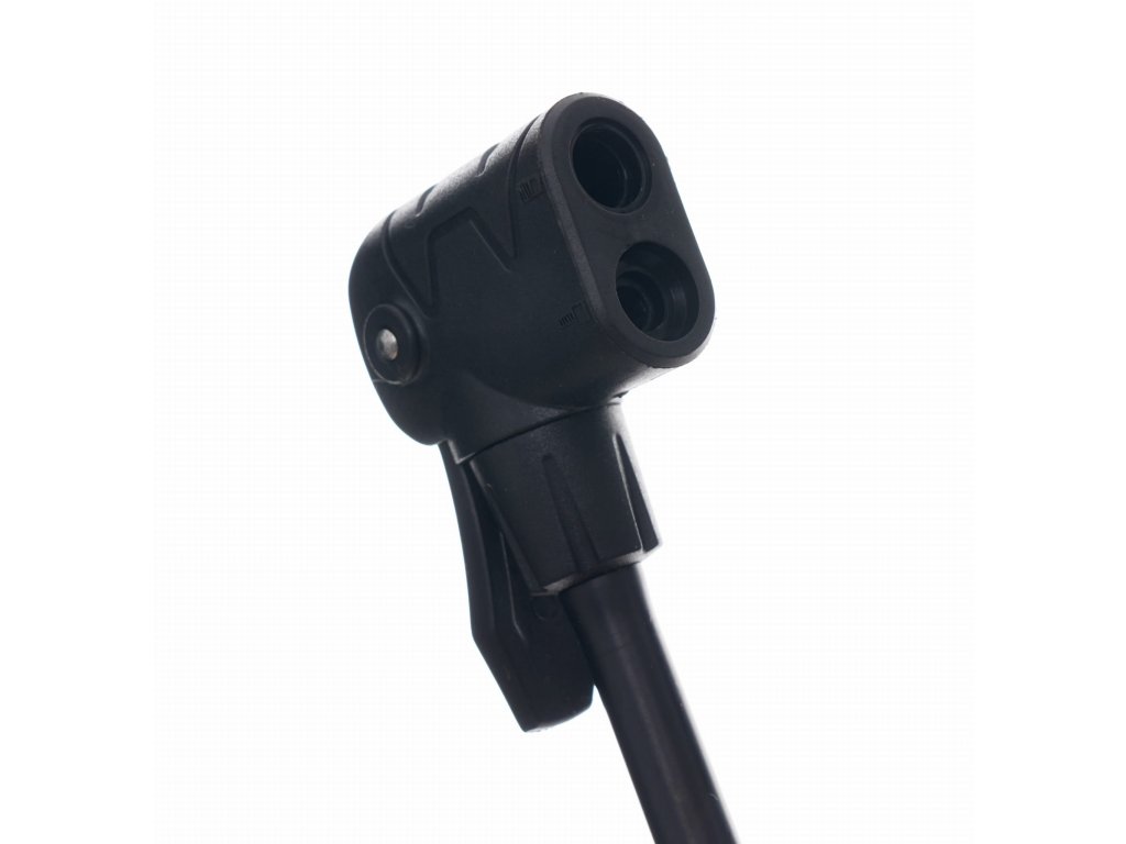 - Dvojitá hlavice kompatibilní se všemi typy ventilků - AV (Schrader), DV (Dunlop) a FV (Presta).