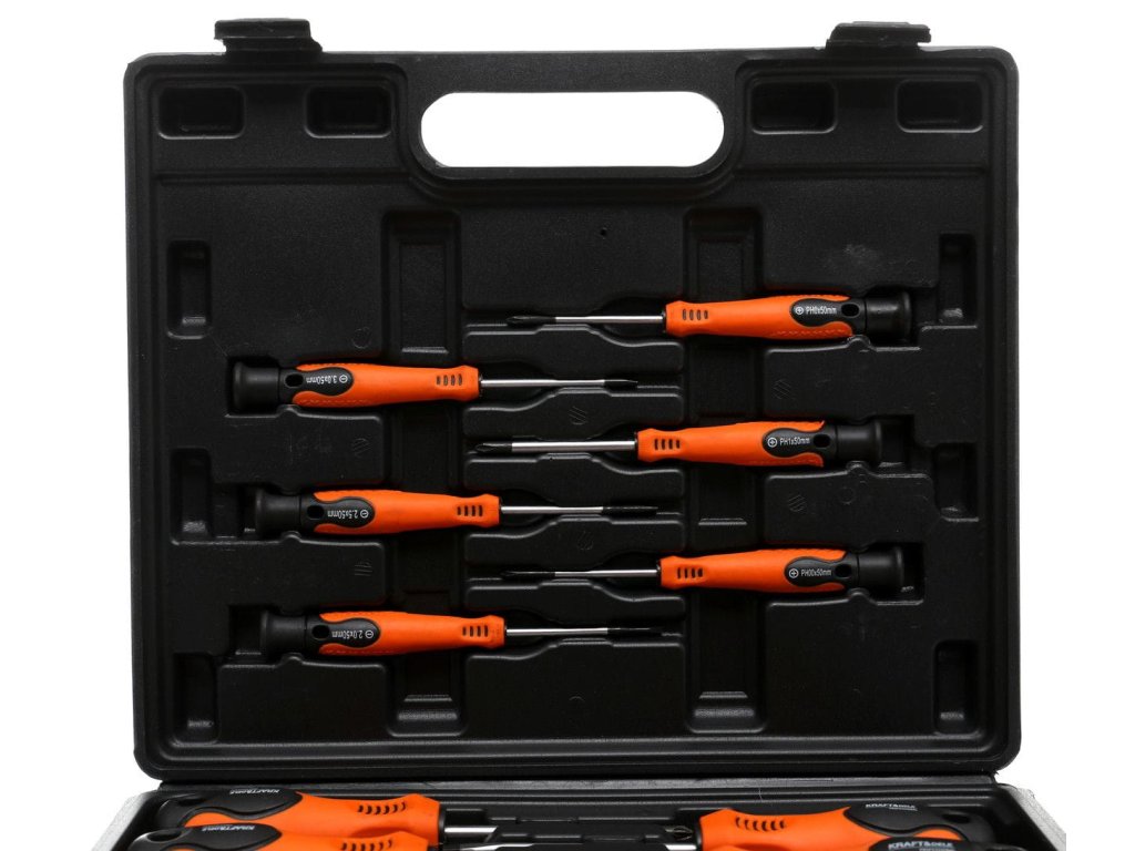 - Tradiční šroubováky: 3 ploché (4.0x75, 6.5x100, 8.0x150mm), 2 křížové (PH1x75, PH2x100mm), 2 typu hvězdička (PZ1x75, PZ2x100mm)
