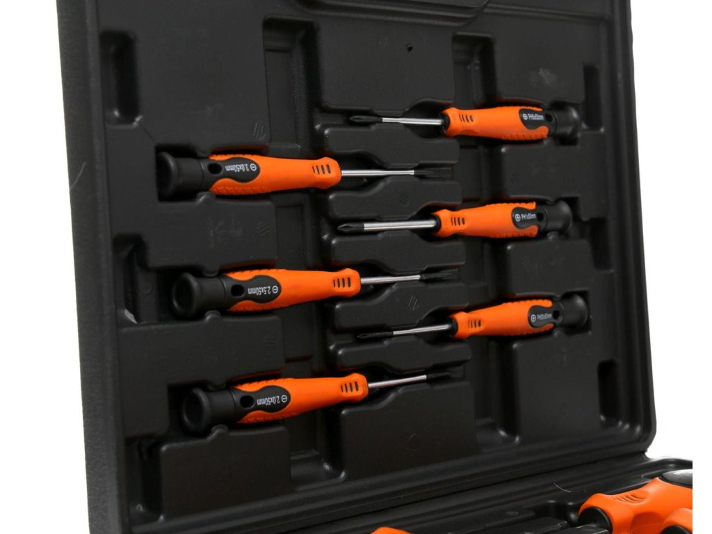 - Precizní šroubováky: 3 ploché (2.0, 2.5, 3.0mm), 3 křížové (PH0, PH00, PH1)