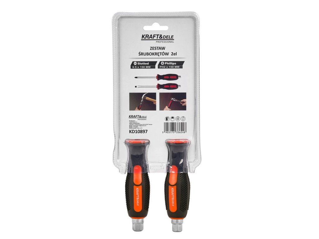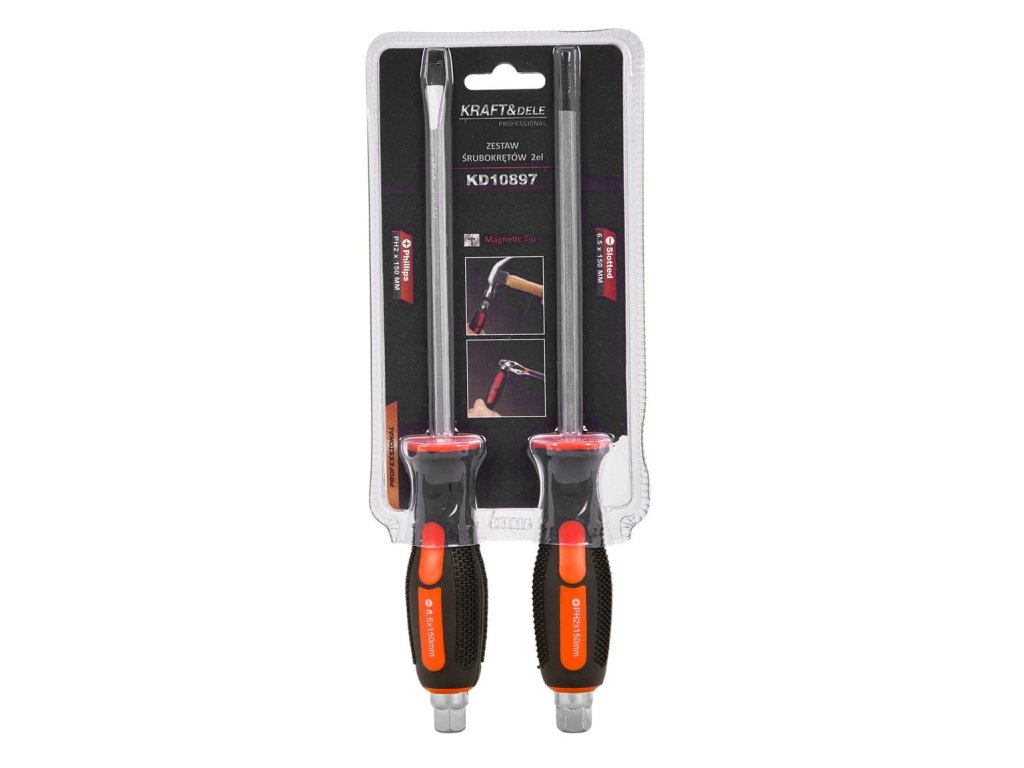 - Sada obsahuje 2 nezbytné prvky: plochý šroubovák o velikosti 6.5x150mm a křížový šroubovák PH2x150mm.