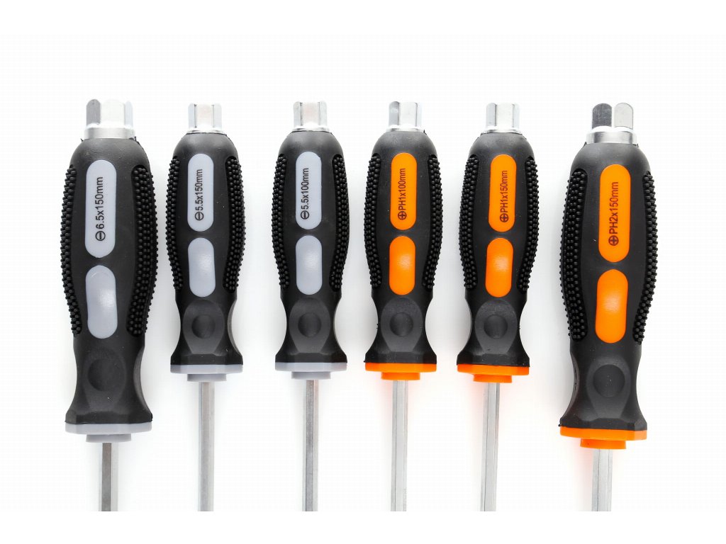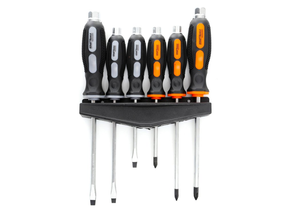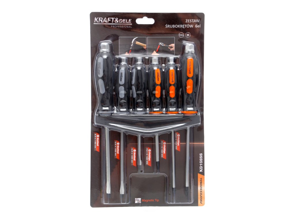 Pokud hledáte spolehlivou sadu šroubováků, právě jste ji našli! Sada KD10898 obsahuje 3 ploché a 3 křížové šroubováky, perfektní pro každodenní použití. Díky ergonomickému designu je držení pohodlné a práce s nimi snadná. Navíc jsou vyrobeny z vysoce kvalitních materiálů, které garantují dlouhou životnost. Ideální volba pro každou dílnu!
