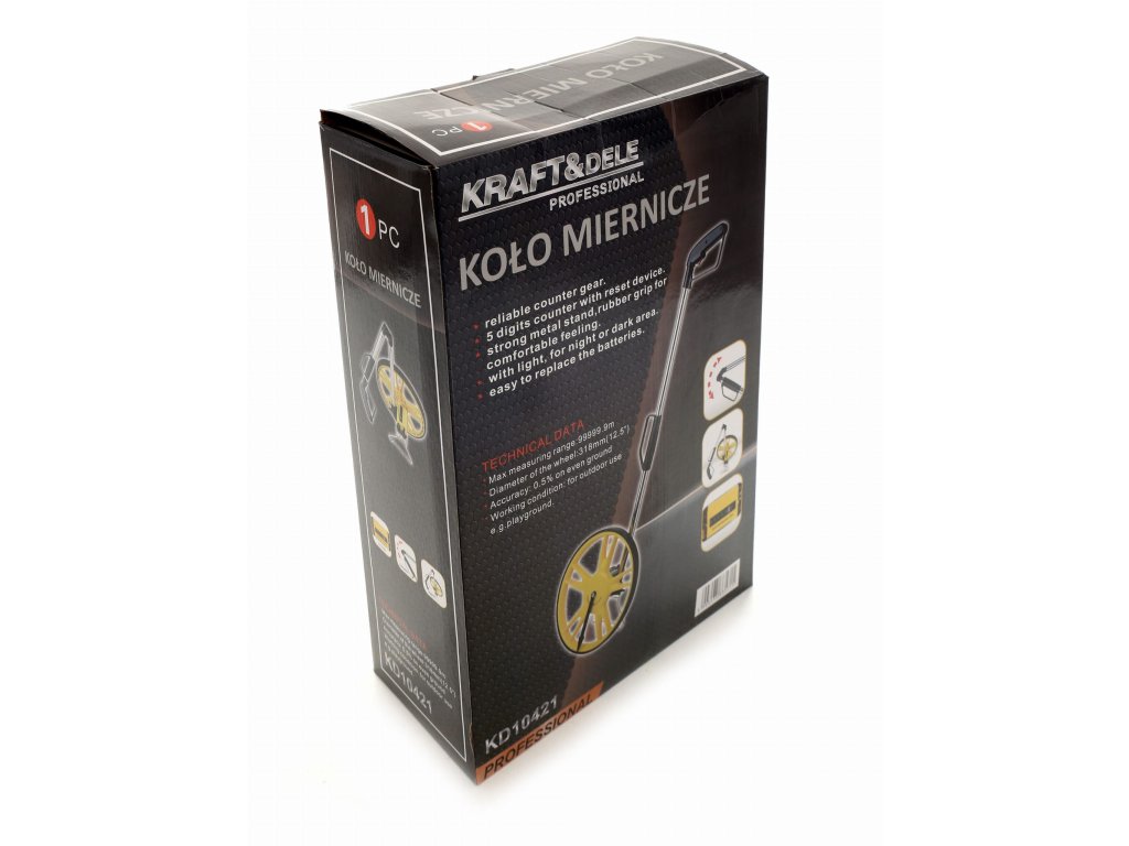 - TECHNICZNE PRODUKTU Marka: KRAFT&DELE Model: KD10421 Typ narzędzia: koło miernicze Zakres: 99999,9 metrów Dokładność: 0,5% Jednostka pomiarów: metr (decymetr) Temperatura robocza: -10oC