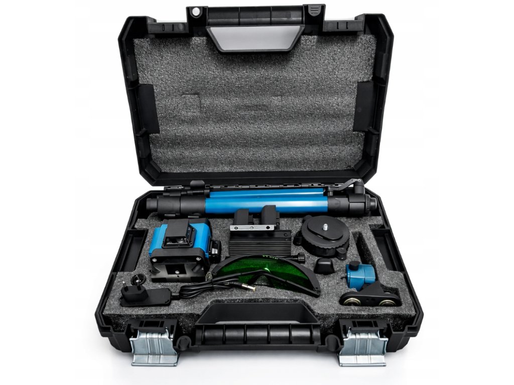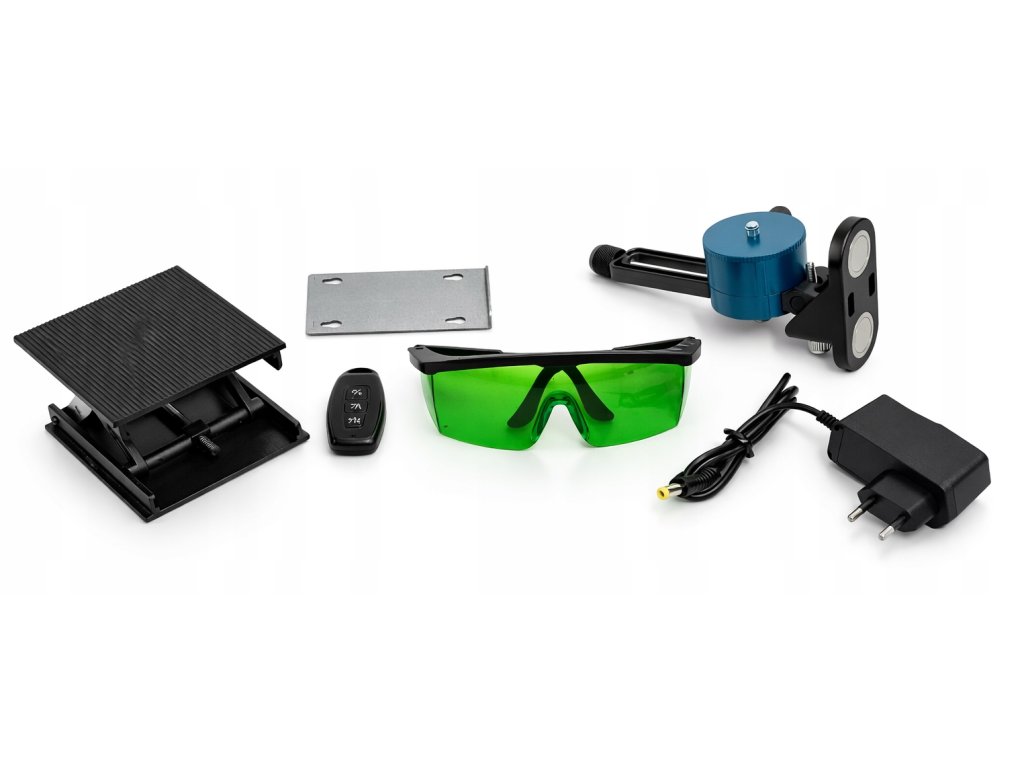 - 🟢 Zelený křížový laser – skvělá viditelnost i ve světlejších místnostech