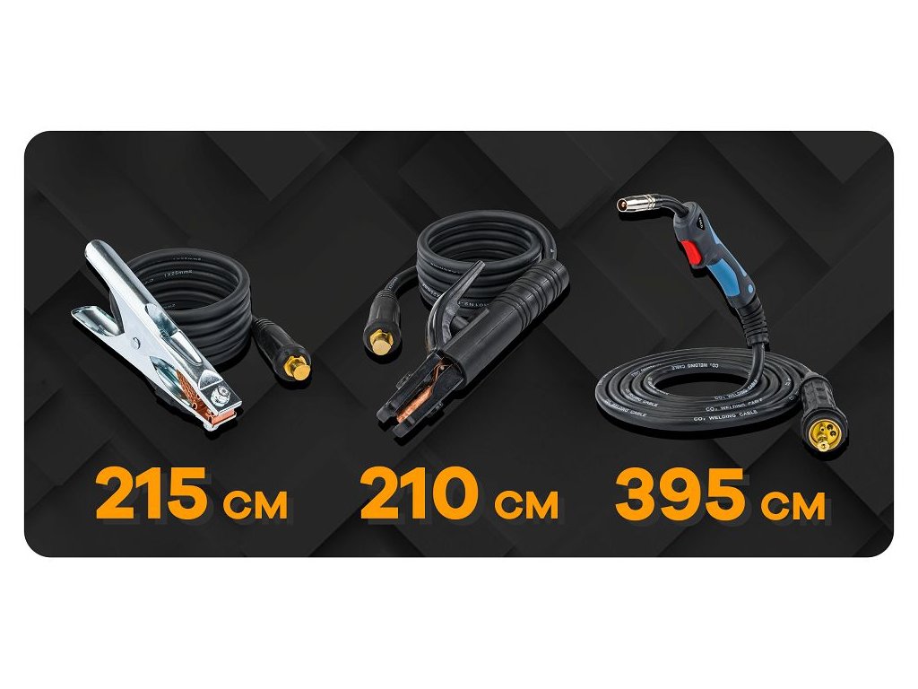 - Bohatá výbava: hořák EURO, kleště, maska, flux drát, trysky