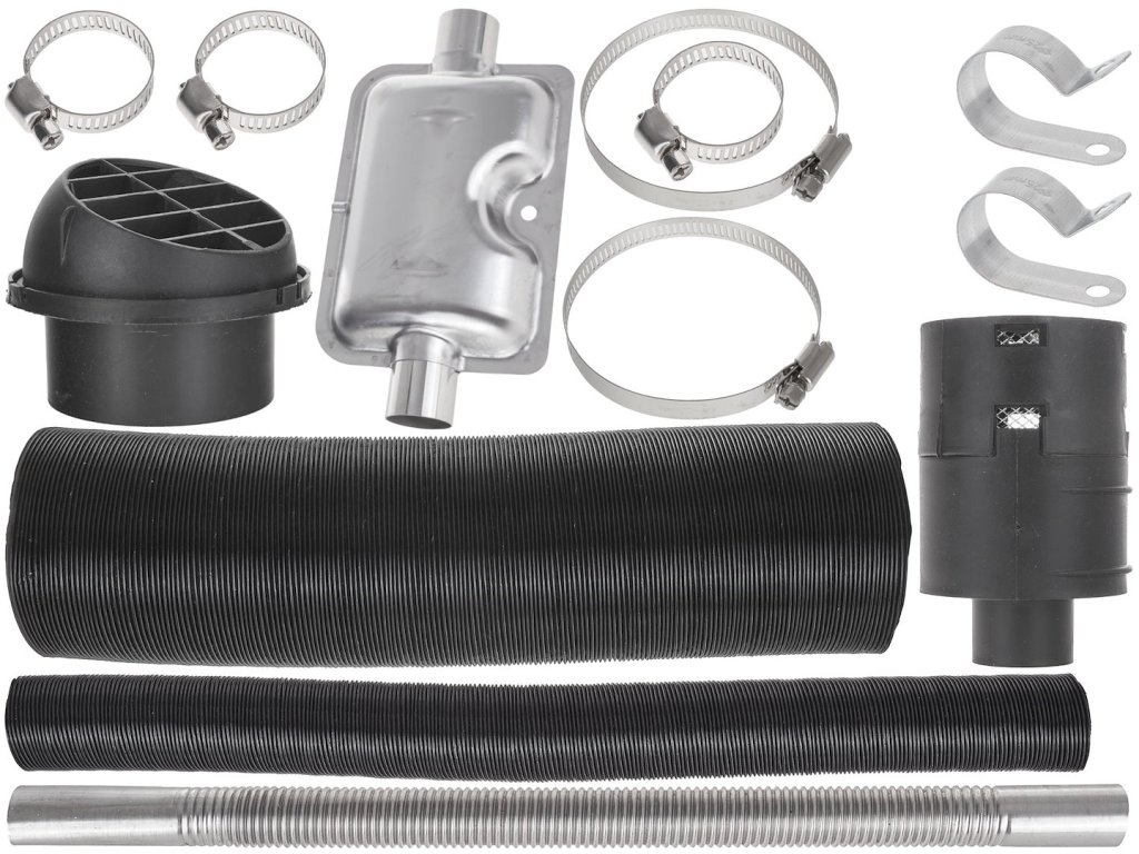 Topení je dodáváno s kompletní montážní sadou – instalace je jednoduchá, avšak doporučujeme odbornou montáž kvůli bezpečnosti výfukových plynů.