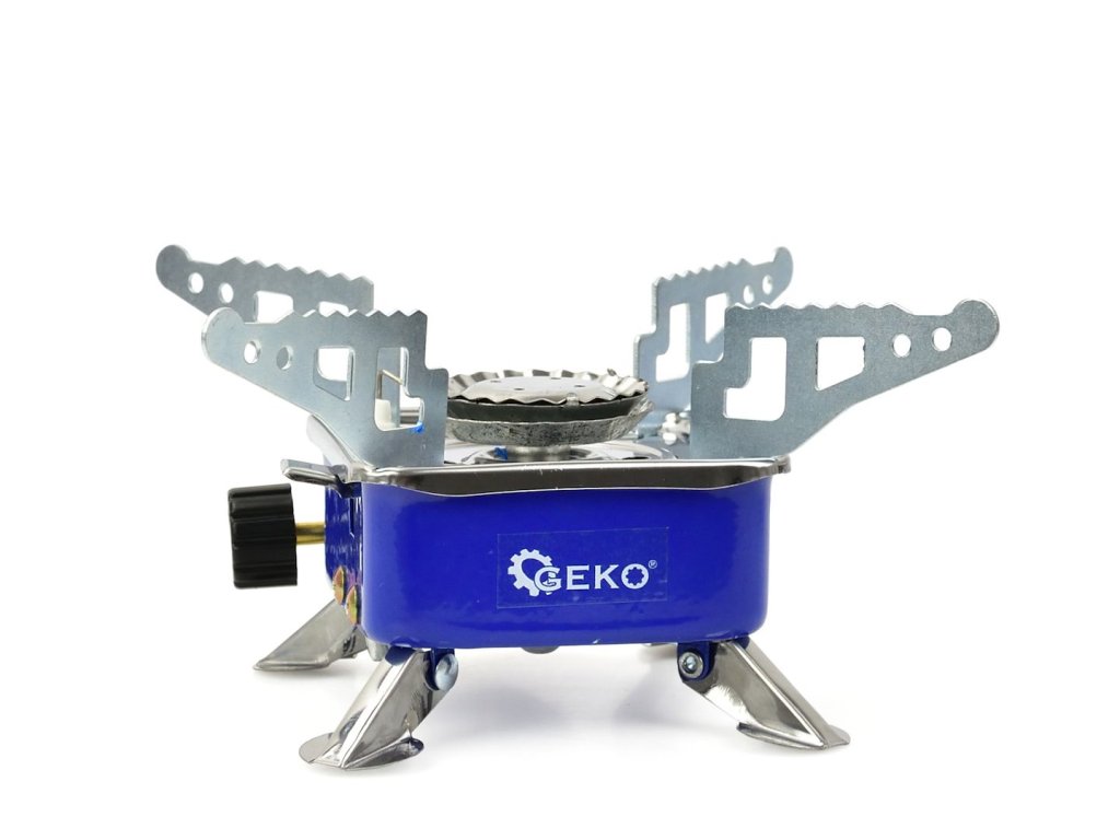 GEKO mini kempingová vařička na plynové kartuše – kompaktní a lehká turistická jednoplotýnka s piezo zapalováním a regulací plamene. Ideální na výlety, kempování i cyklotúry.