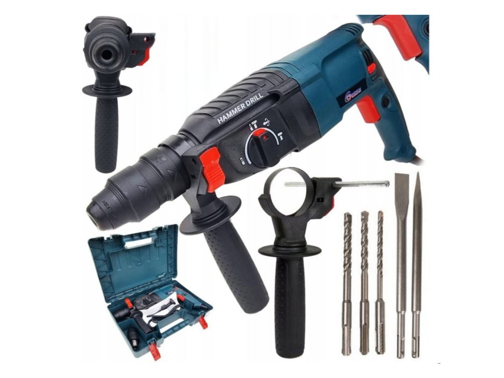 - Rychlá výměna nástrojů: Systém SDS-PLUS šetří čas a usnadňuje výměnu vrtáků nebo sekacích nástrojů.