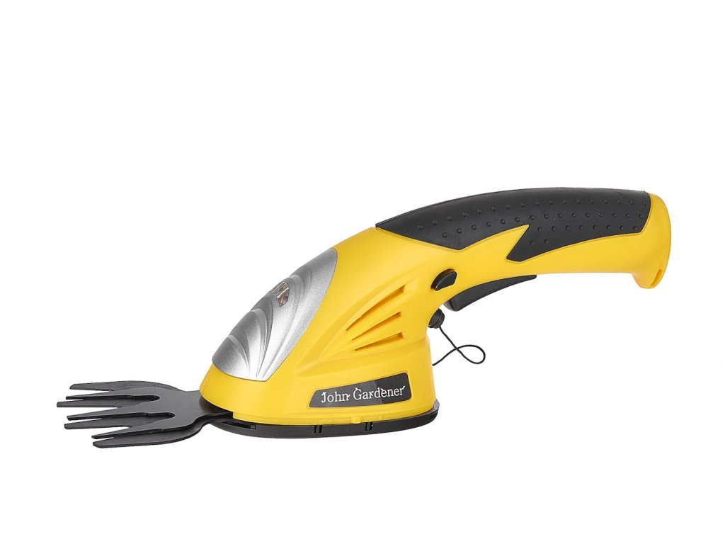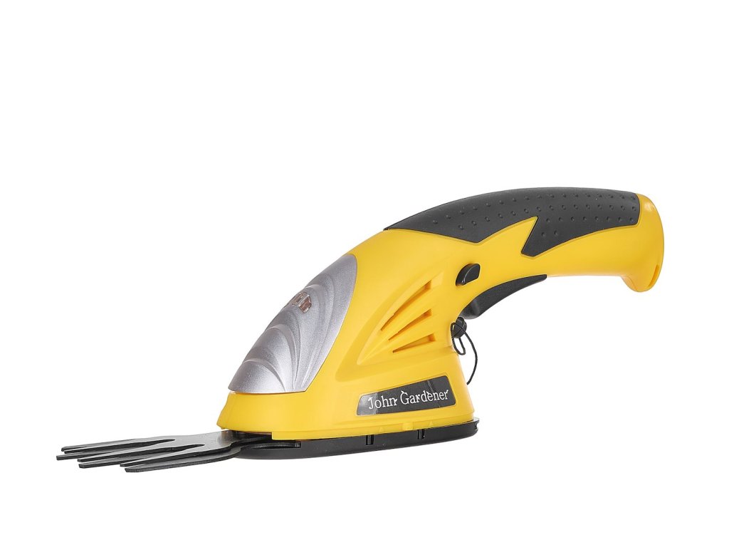 Akumulátorové nůžky s rukojetí 7,2 V Li-Ion 1,3 Ah značky John Gardener. Určené k řezání a stříhání tenkých výhonků v živých plotech, keřích a okrasných keřích. Po nasazení rukojeti ideální pro stříhání trávy u okrajů a na malých plochách v domácích zahradách.