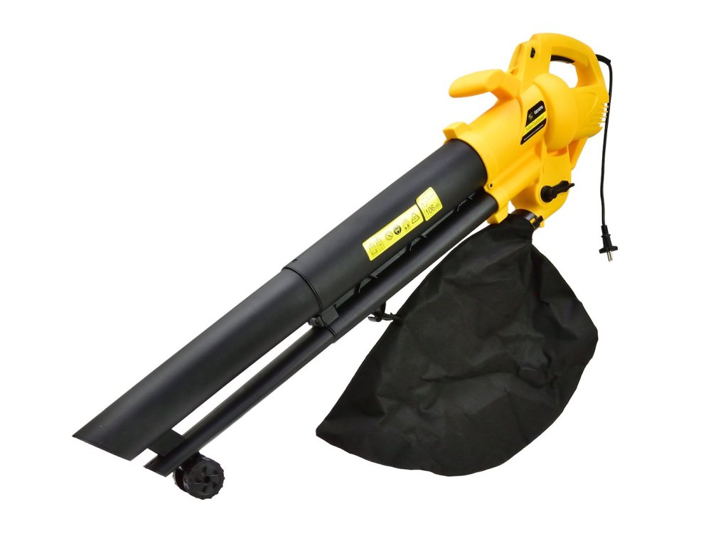 Vysavač s drtičem / foukač na listí John Gardener. Zařízení je vybaveno elektromotorem o výkonu 3000 W s možností regulace otáček v rozmezí 8000–14000 ot./min.