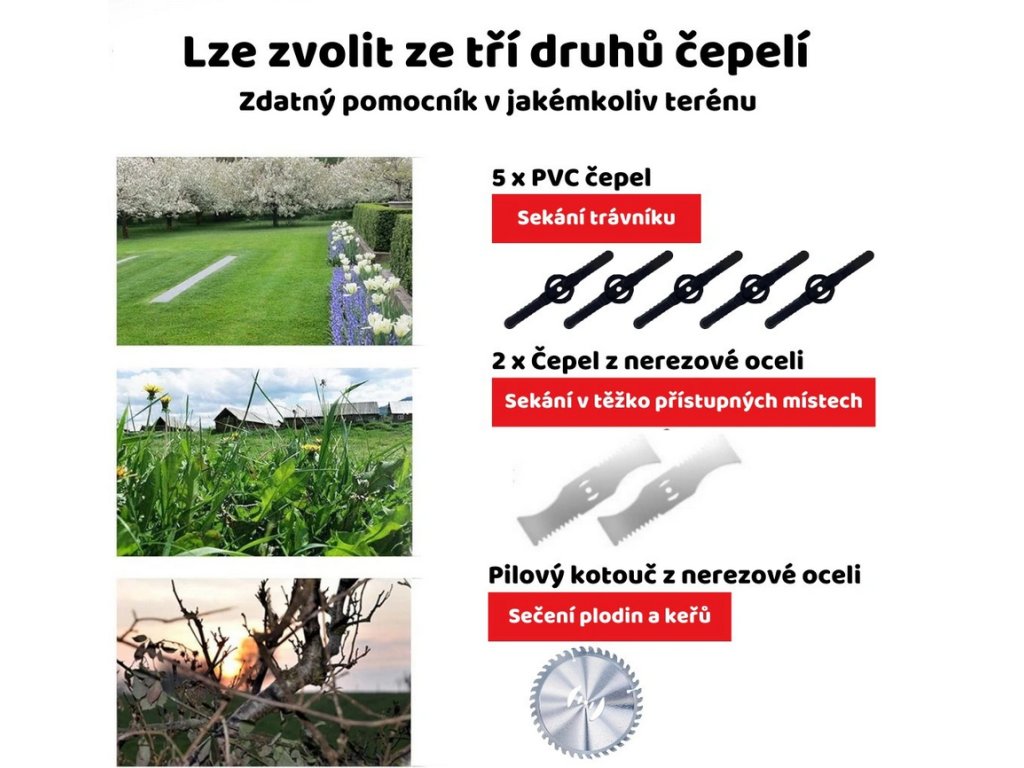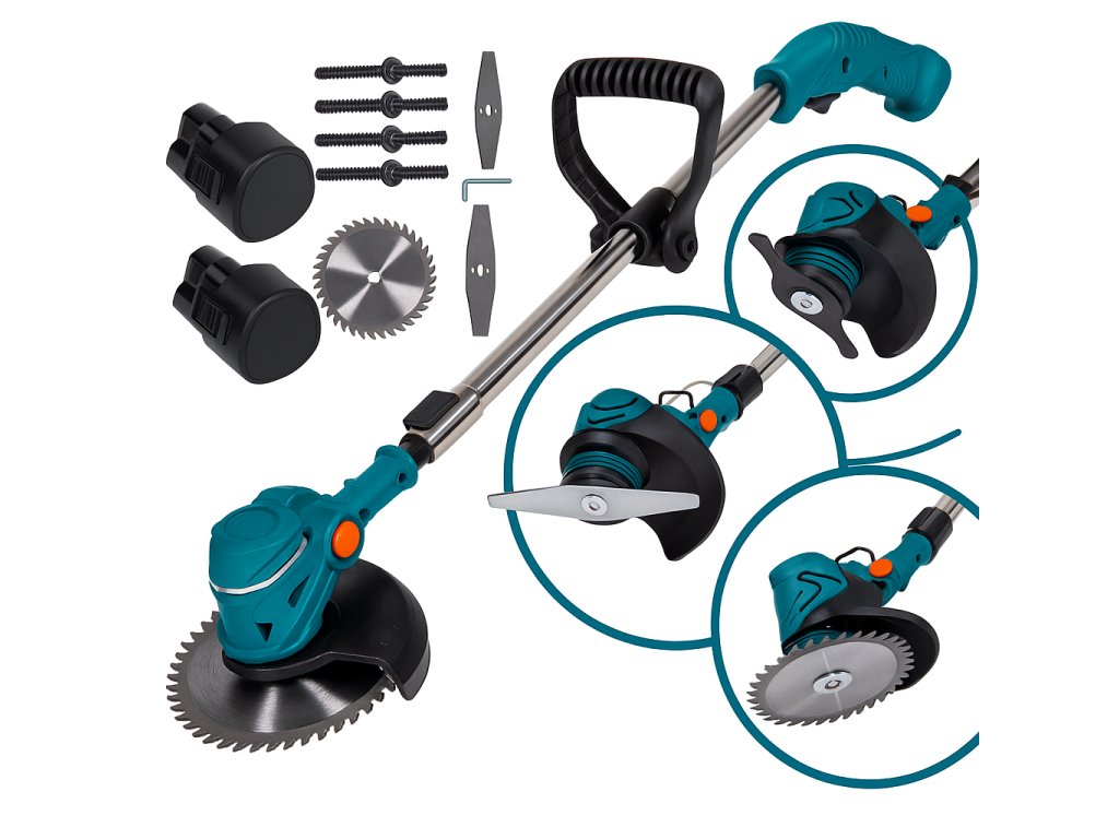 Vybavená 2× Li-Ion baterií, nastavitelnou délkou 100–130 cm a několika typy nožů – zvládne vše od jemné trávy až po nálety u plotu. ✂️🔋