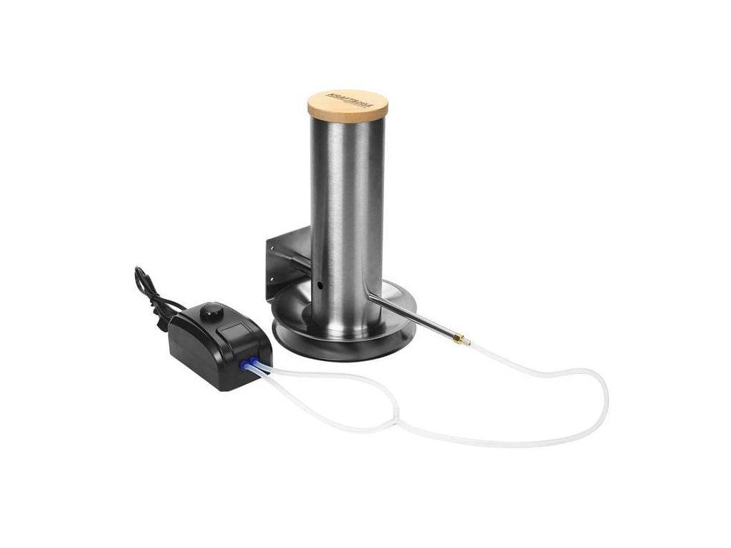 Stabilní a rovnoměrné zakouření bez hlídání ohniště: nerezový generátor kouře přivádí do udírny dlouhotrvající dým s minimální spotřebou energie 4 W. Díky regulaci průtoku vzduchu nastavíte intenzitu kouře podle typu uzení a velikosti komory. Odolné provedení s krytím IPX4 zvládne i ztížené podmínky u venkovních udíren.