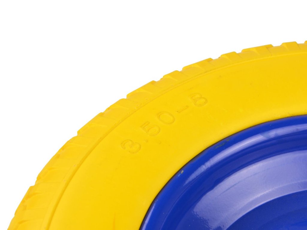 Bezdušové kolo pro kolečko 3,50 - 8. Je vyrobeno z vysoce kvalitního polyuretanu. Odolný kovový ráfek s práškovým nástřikem zajišťuje zvýšenou stabilitu. Celé kolo je vyrobeno z vysoce kvalitních materiálů.