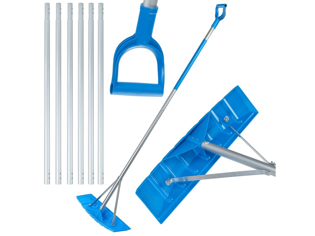 Střešní škrabka na sníh s pracovní délkou 7,5 m je nenahraditelným nástrojem pro bezpečné a účinné odstraňování sněhu ze střech budov, fotovoltaických instalací atd. Díky modulární konstrukci a odolným materiálům umožňuje rychlé čištění i těžko přístupných ploch bez nutnosti vstupu na střechu.