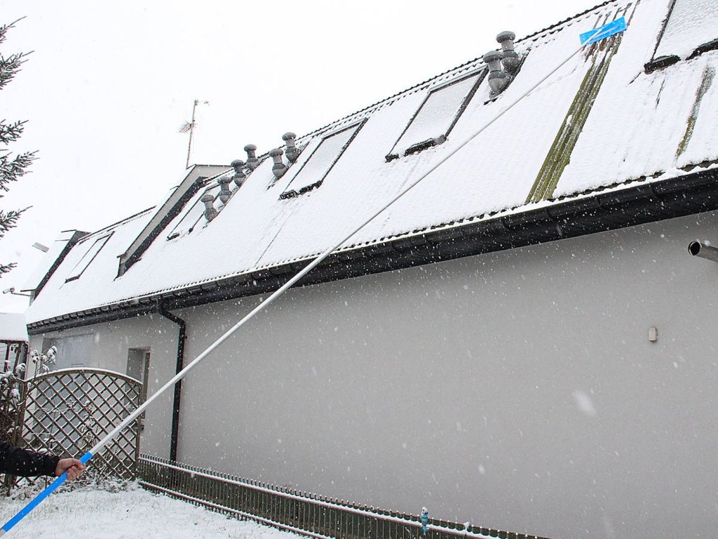 Bezpečné odstraňování sněhu bez nutnosti vstupovat na střechu.