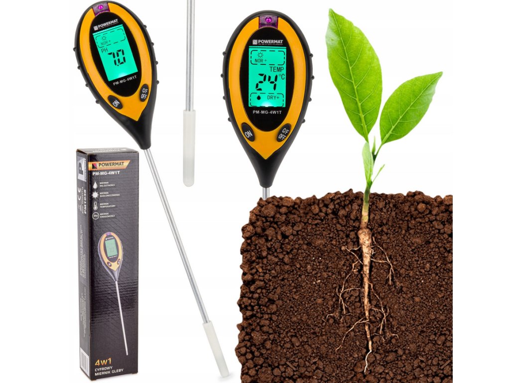 Elektronický měřič kyselosti, teploty a vlhkosti půdy je zařízení, díky kterému se o své rostliny profesionálně postaráte.