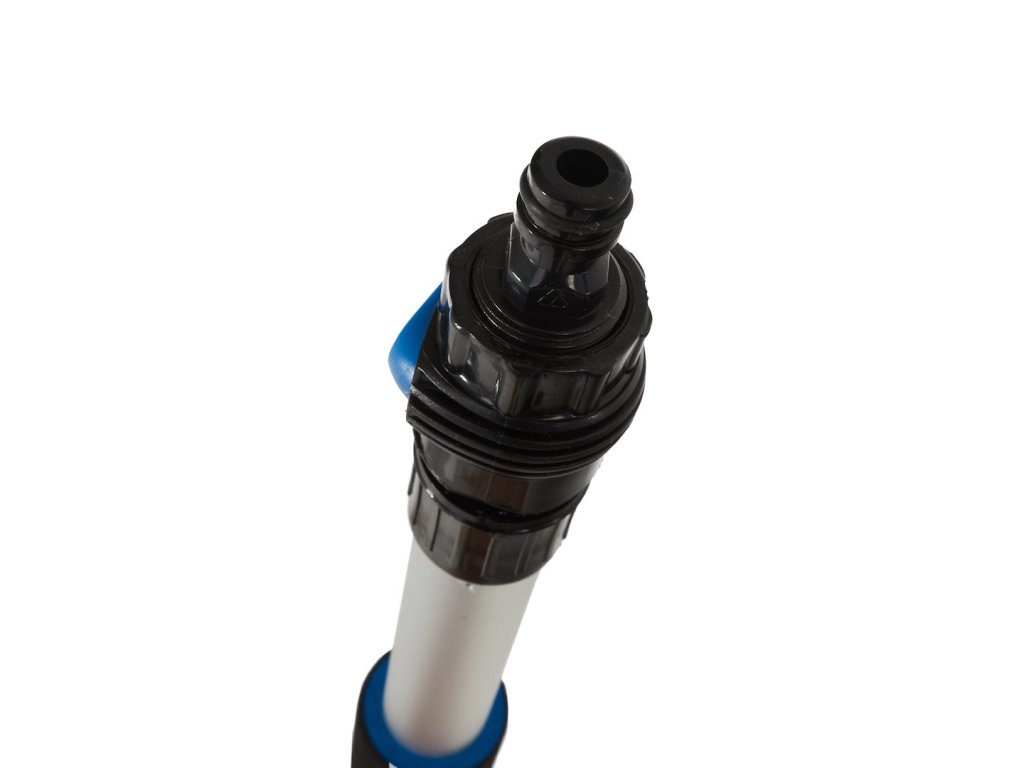 - Má pěnovou rukojeť, spínač pro zapnutí/vypnutí přívodu vody a konektor pro připojení hadice